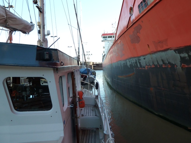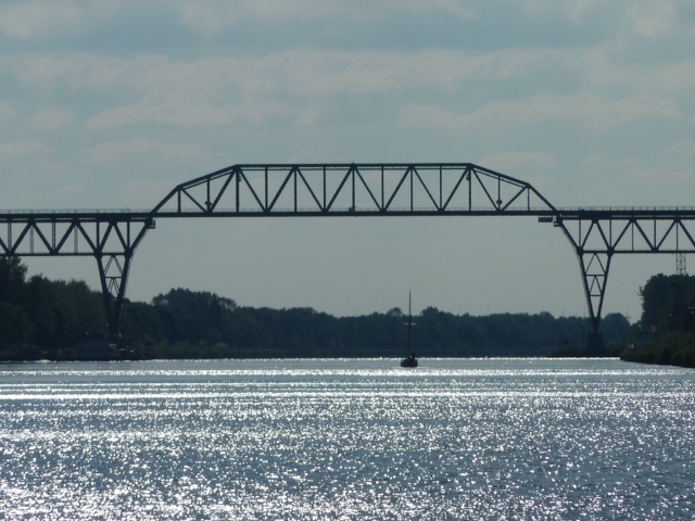 Heute heißt er offiziell NOK, Nord-Ostsee-Kanal, international wird er einfach kurz Kiel-Canal genannt. Dieses gigantische Bauwerk von fast 100 km Länge wurde in nur acht Jahren von 1887 bis 1895 gebaut. Kaiser Wilhelm schaffte sich mit dem Kanal eine schnelle Möglichkeit, Flottenverbände der kaiserlichen Marine von Wilhelmshaven nach Kiel zu verlegen ohne den weiten und vom Feind belauerten Umweg um Skagen herum. Gleich zu Beginn wurde der Kanal mit einer Wassertiefe von 9 m (heute etwa 12 m (gerade nachgemessen) und einer Sohlbreite von 22 m gebaut. Zur Fertigstellung 1895 wurden gleichzeitig zwei Hochbrücken, fünf Drehbrücken und 16 Fähren fertig gestellt und in Betrieb genommen. Über weite Strecken mussten tiefe Einschnitte ins Land gegraben werden, an anderer Stelle wurde der Kanal mit Dämmen 3 m über dem Niveau gebaut. Eine ungeheure Leistung, wenn man sich vorstellt, dass die Manager als Transportmittel das Pferd zur Verfügung hatten. Irgendwie glaube ich, das damals wohl ohne Computer und E-Mail gearbeitet worden ist. Auch eine gewaltige logistische Leistung, mussten doch alle Teile für diese zahllosen Baustellen herangeschafft werden. Viele Tausend Arbeiter mussten untergebracht und verpflegt werden. Besonders, wenn wir die Elbphilharmonie und den Berliner Flughafen betrachten, ziehen wir vor der gewaltigen Leistung der Menschen von damals den Hut. 98,5 km schippern wir nun mit HEIMKEHR von Kiel nach Brunsbüttel quer durch Schleswig Holstein. Sea U Bert