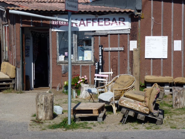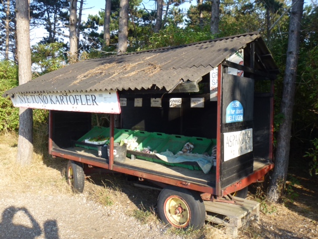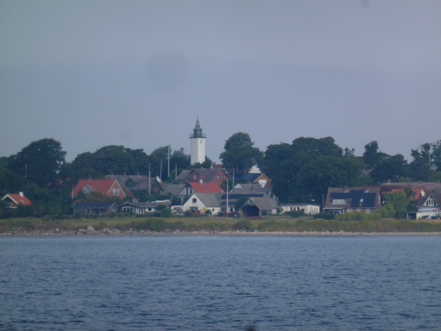 Das Gemüsegeschäft hat durchgehend geöffnet. Gut für die 120 Einwohner in ihren 60 Häusern. Sie leben hier in einer eigenständigen Gemeinschaft. Es gibt keine Autos, nur Trecker. Bereits seit der Steinzeit ist die Insel bewohnt, die Kirche steht seit 1300.. Seit 1801 ist der der Kirchturm eine navigatorische, christliche Allianz eingegangen, indem er gleichzeitig als Leuchtturm dient. Einmal im Jahr findet hier ein großes Jazz Festival statt. Wir sind nun unterwegs Richtung Middelfart. Sea U Bert
