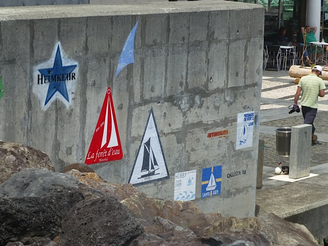 Freunde, die auf der Azoren-Insel Terceira leben, haben uns dieses Foto geschickt. Wir haben 2011 als Erste begonnen und unser Logo, den Heimkehr-Stern, an die Hafenmauer von Angra de Heroismo gemalt. Jetzt sind schon weitere hinzugekommen. Das freut uns natürlich.
