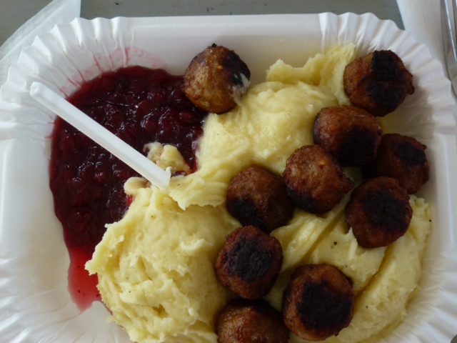 Currywurst in Deutschland, Hotdog in Dänemark, in Schweden sind es Ködböller (gesprochen Ch ödd) mit Mos (Kartoffelbrei) und Lingon (Preisselbeeren). Ist prima.