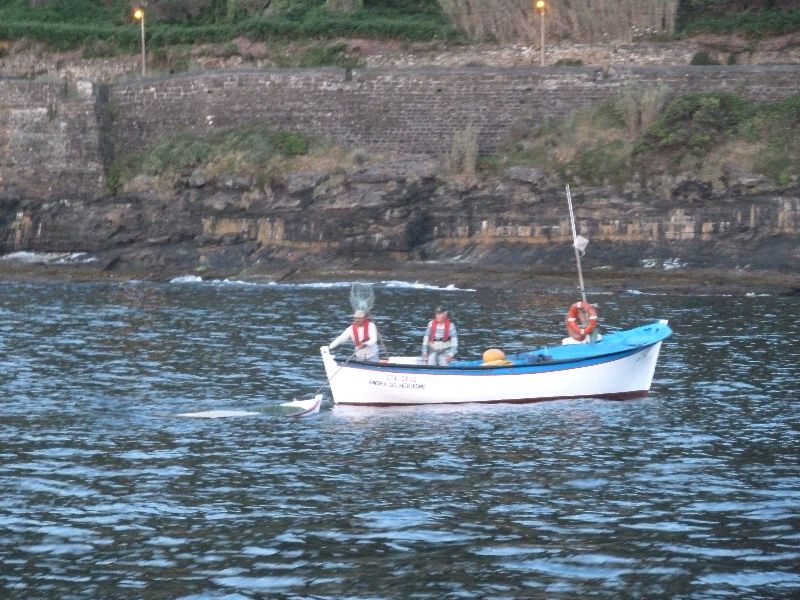 Terceira, Azoren. Beim Einlaufen heute morgen um halb sieben entdecken wir ein vollgeschlagenes, in der Wasseroberfläche treibendes Boot. Diesmal haben wir zwei Fischer drauf hingewiesen, die haben es dann geborgen. Sea u Bert