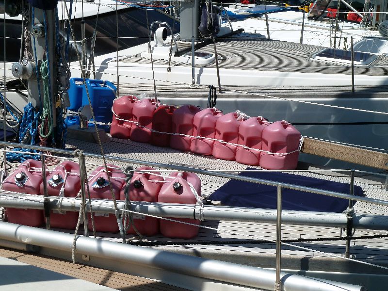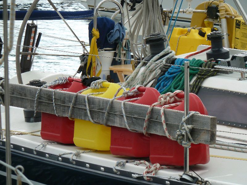 Angra, Terceira, Azoren. Wer mit einer Yacht über den Atlantik segelt, besonders von West nach Ost, hat jede Menge Dieselkanister an Deck. Nicht nur wir mussten die halbe Strecke durch die Flauten motoren. Sea u Bert