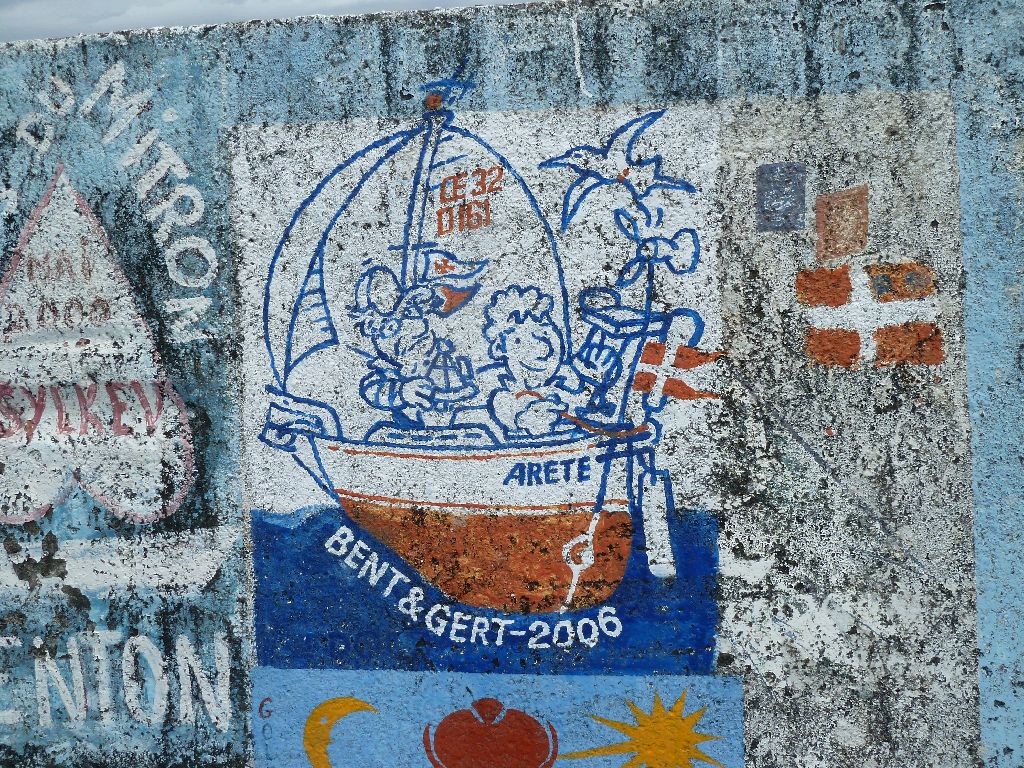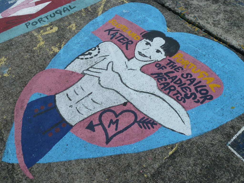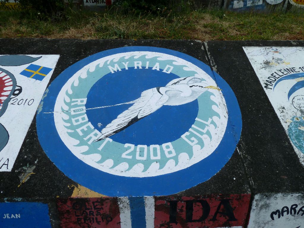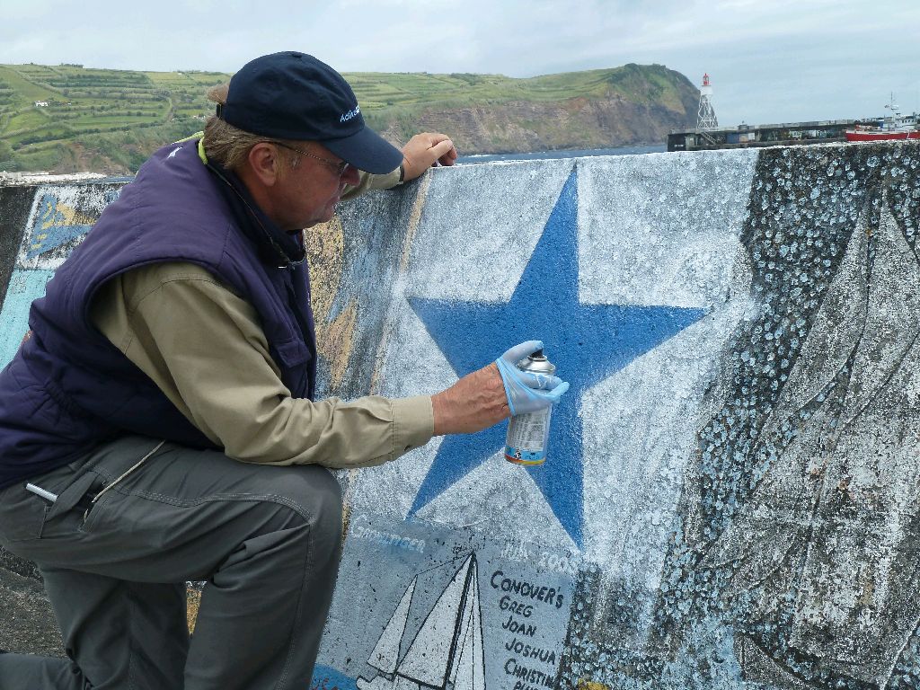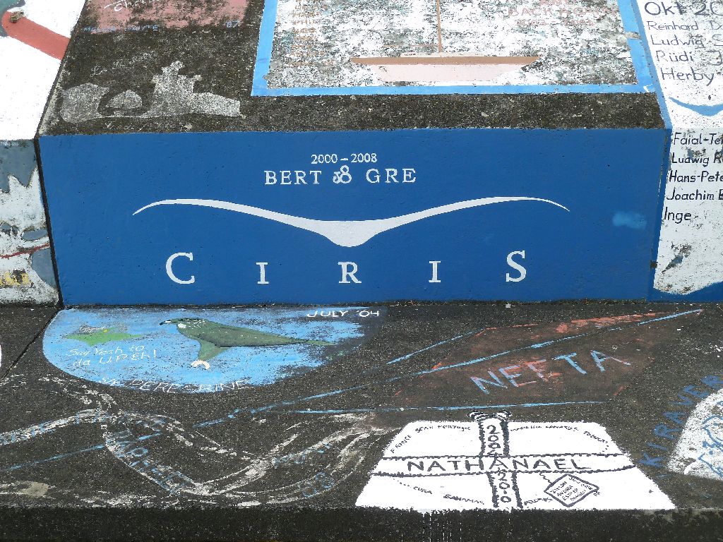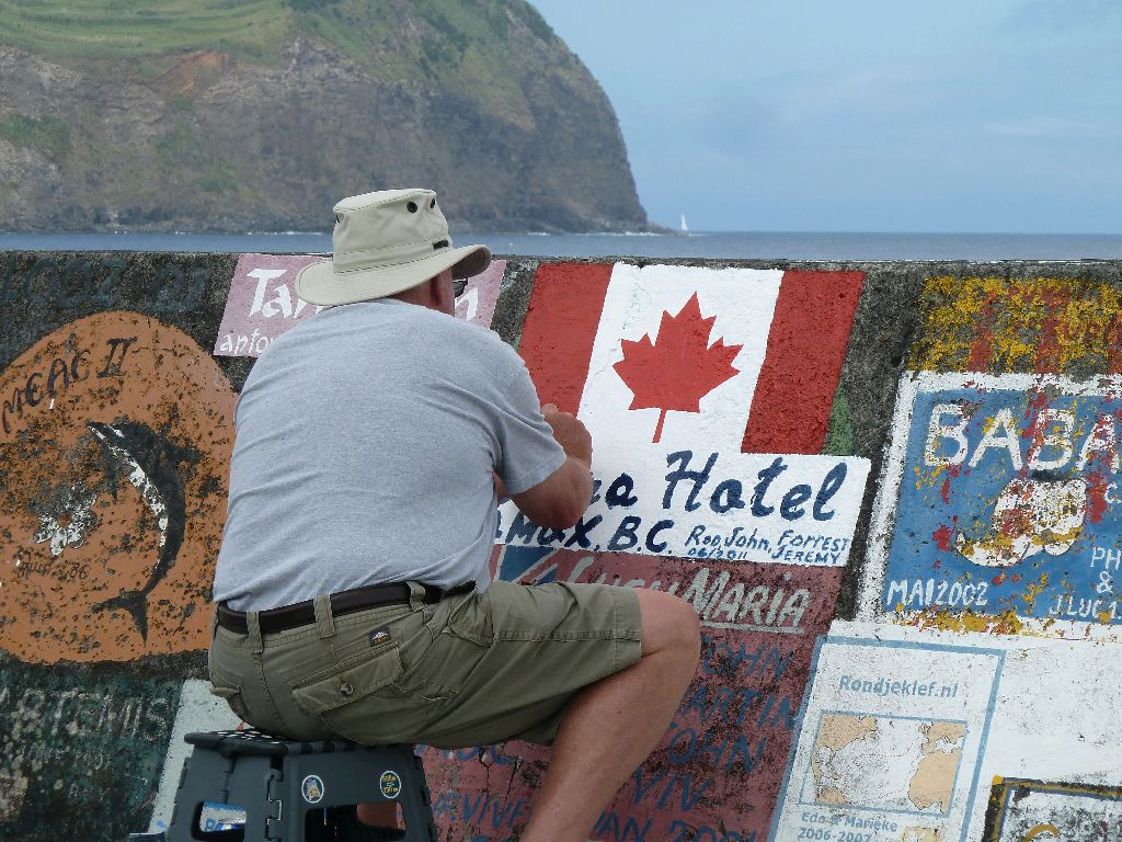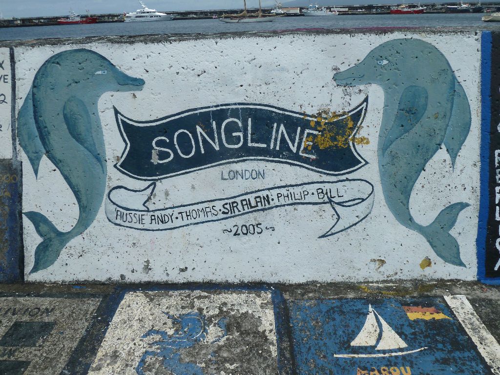 Horta, Faial, Azoren. Hier begann es: die Sitte, sich an den Molen zu verewigen. Wer es nicht tut, sieht Horta nicht wieder, sagen die Leute. Eine kunterbunte Hafenmole voller Kreativität. Hier ein paar Beispiele. Sea u Bert