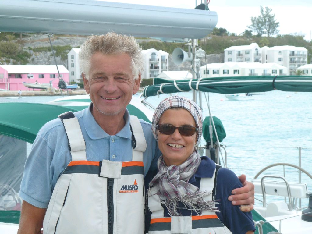 Bermuda. Uschi und Wolfgang unmittelbar nach 800 Meilen gegenan. Erster Wunsch: ein Hamburger.