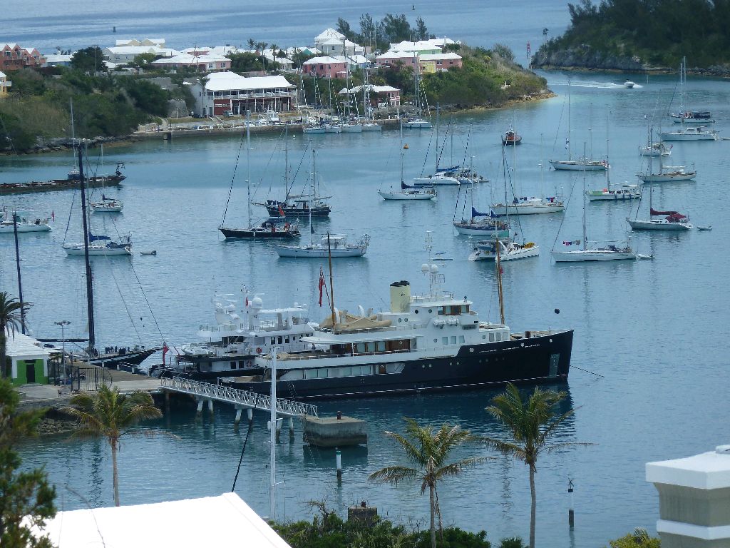 Bermuda. Wir haben in Las Palmas zusammen gelegen, direkt nebeneinander, Kalandia aus England und Cisa aus Augsburg. Das ist eineinhalb Jahre her. Cisa musste die Atlantiküberquerung damals wegen eines Ruderschadens abbrechen und zu den Kapverden laufen. Mit Kalandia sind wir dann durch die Bahamas und weiter bis Charleston gesegelt. Auf den Bermudas in St. Georges haben sich die drei Schiffe wieder getroffen. Mitten im Atlantik, einfach so. Alle mit dem Ziel Europa. Große Freude beim Wiedersehen. Cisa ist sechs Tage von Tortula hart gegenan gesegelt. Kalandia in gut vier Tagen von Norfolk. Das Begrüßungsgeschenk von Kalandia waren sechs Rollen Klopapier. Ich hatte Liz gesagt, dass dies das teuerste auf der Insel sei (8 Rollen mittlerer Qualität 28$). Unser Vorrat beträgt zur Zeit 12 Rollen, aber wir haben keine Aufzeichnung über den Verbrauch. Jetzt haben wir 18 Rollen, das sollte bis Oberndorf reichen. Sea u Bert