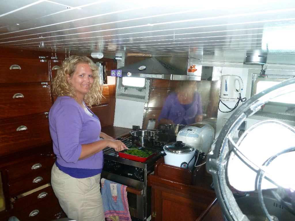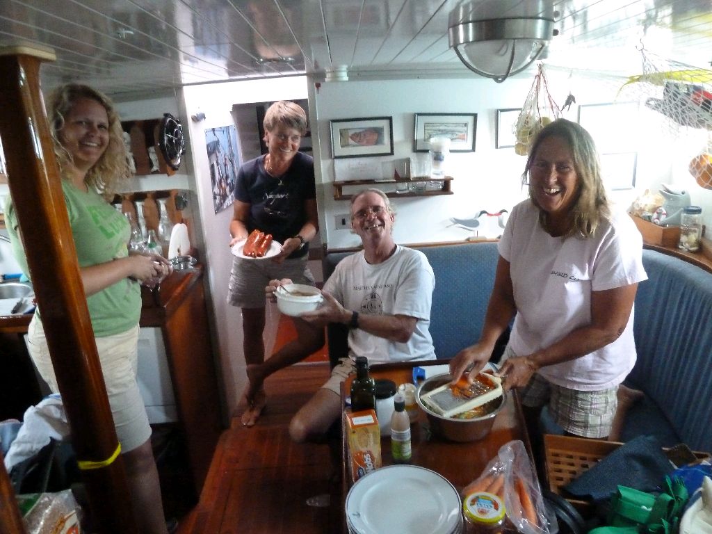 Bermuda. Gestern haben wir gegrillt. Unsere Nachbarn Chrissi und Rick waren bei uns und haben mitgekocht. Coleslaw, der amerikanische Weißkohlsalat, den Chrissi und Rick gemacht haben, war lecker. Weißkohl wird von den Seglern geliebt, weil er ohne Kühlung haltbar ist und vielseitig verwendbar. Sea u Bert