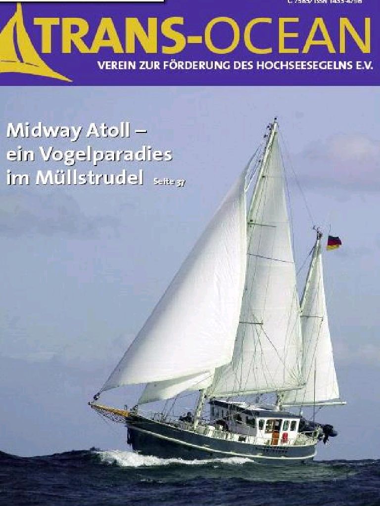 Cuxhaven. Ein schneidiges Atlantikfoto von Heimkehr ist auf der Titelseite des Trans-Ocean-Magazins tu sehen. Das Bild entstand auf dem Weg nach Porto Santo und Uwe von MOMO (www.momos-meilen.de) hat es gemacht. MOMO ist zur Zeit unterwegs nach Neu Kaledonien, 1000 Meilen nördlich von Neuseeland. Danke Uwe, danke nach Cuxhaven! Sea u Bert