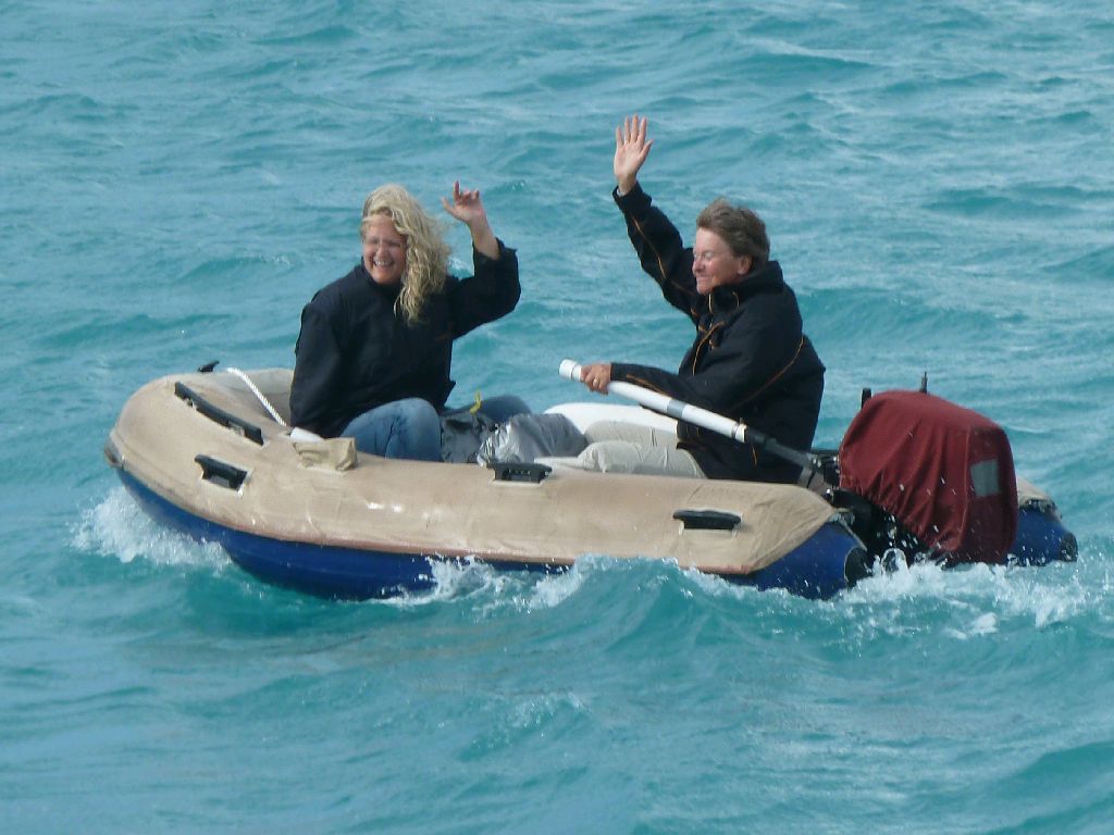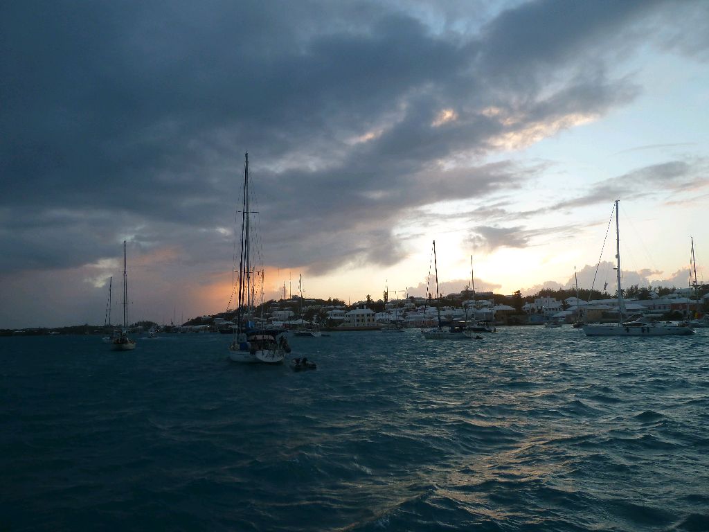 Bermuda. Es war ein bisschen wie früher. Rumgealbert, Malefitz gespielt, Flitzeboot gefahren und vieles mehr. Eben ist sie wieder weggeflogen. Das ist immer traurig. Marlene hat sie zum Flughafen gebracht, ich konnte wegen des starken Windes nicht von Bord. Tüchtig nass geworden sind die beiden. Da das Ankerfeld inzwischen ziemlich voll ist, müssen wir bei starkem Wind sehr aufpassen, und heute Nacht auch Ankerwache gehen. Sea u in Oberndorf, Julia!