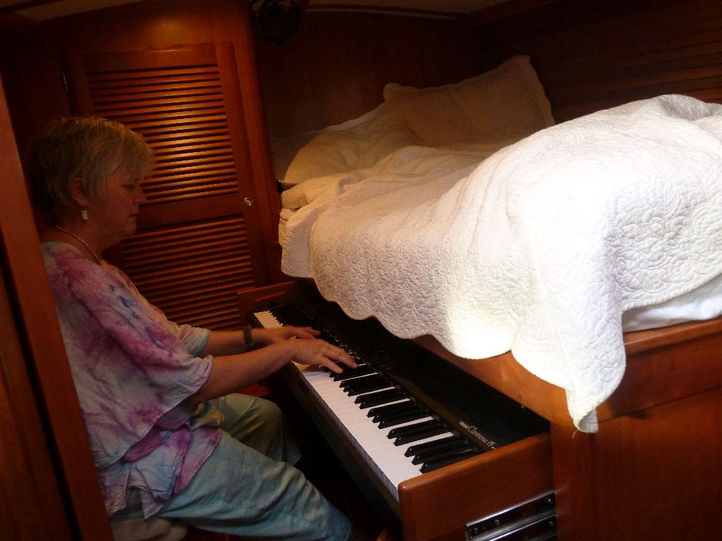 Bermuda. Mary Anne und Larry segeln seit seiner Pensionierung als Air Canada Captain mit ihrer ‘Traversay’. Wenn man die Aufzählung der Stationen ihrer Reise hört, wird man blass. Ich versuche es mal: Washington State – Hawaii – Alaska – Codiac – direkt von dort nach Neuseeland (56Tage)- div Stationen in Australien – Neuseeland – Chile – Magelhanstraße – Antarktis – Chile – Falkland – Süd-Georgien – Uruguay – Buenos Aires – Valparaiso – Osterinseln – Pitcairn – Haiti -Neuseeland – Südafrika – St.Helena – St.Maarten – Bermuda n(jetzt). Vo hier segeln sie direkt nach Halifax und von dort nach London, um zu überwintern. Im April nächsten Jahres Hamburg und von dort zum Nordkap. Da nimmt sich unsere Reise aus wie ein Schulausflug. Mary Anne hat Musik studiert und deswegen ein elektronisches Klavier an Bord, mit einer großen Tastatur. Mit einer Schubladen-ähnlichen Konstruktion zieht sie diese unter den Vorschiffsbett hervor und macht feinste Musik. Ich ziehe meinen Hut, Chapeau! Gute Reise ‘Traversay’ Sea u Bert