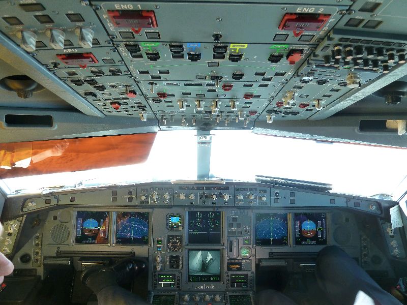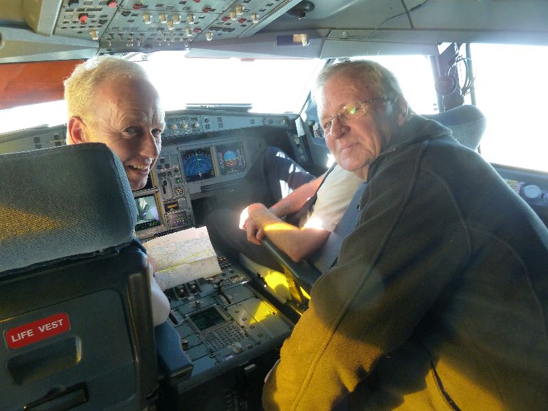 30° West in 15 km Höhe. Als der Kapitän des Lufthansa-Airbus uns allen eine gute Reise wünschte, sagen Leni und ich wie aus einem Mund: “Den kennen wir doch”. Der Captain unseres Fluges nach Charlotte war ein Marinekamerad. Der flog früher Starfighter und Tornados. Das war eine Freude und bald darauf saßen wir bei ihm im Cockpit. Die Zeit verging wie im ‘Fluge’. Also, so ein Airbus hat doch einige Knöpfe und Schalter mehr als unsere Heimkehr. Prima Schnackerei von guten alten Zeiten. Sea U Bert