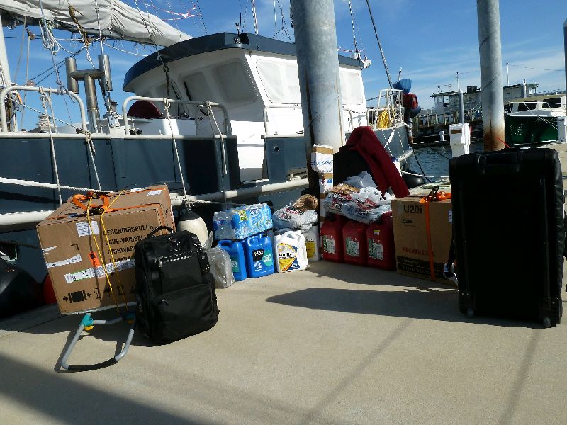 Charleston, South Carolina. Den Mietwagen für die Anreise haben wir gleich genutzt: Kanister für Generator- und Außenborderbenzin (mit 9$ für etwa 20 Liter spottbillig), Motorenöl zum Nachfüllen für unsere Deutzer und Zweitaktöl, welches wir als Korrosionsschutz unserem Diesel (1:200) beimengen werden. Der neue Hond Generator (Name Genny)läuft, und er ist stark genug das 50 Ampere Ladegerät zu speisen. Die Geschirrspülmaschine läuft, wenn auch nach hörbarem zögern. Es geht voran. Sea u Bert