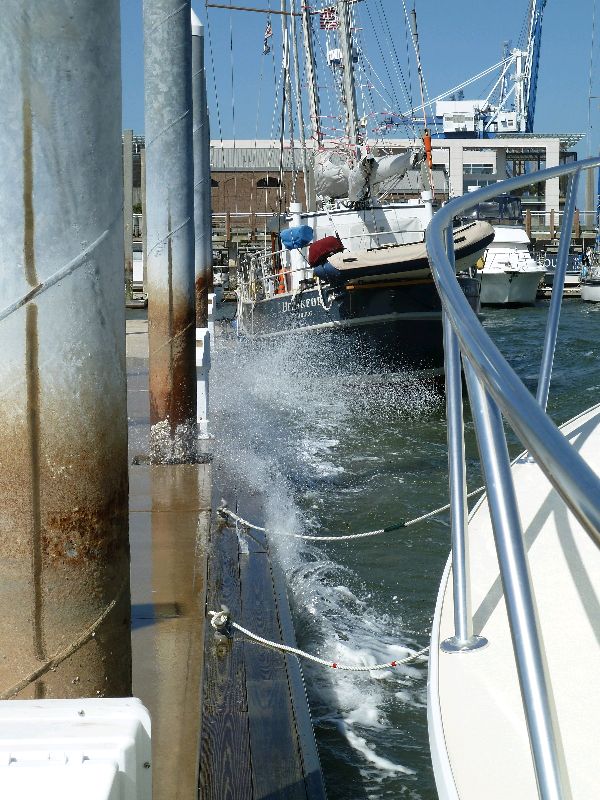 Charleston, South Carolina. Ein überaus herzlicher Empfang durch die Dockmaster in der Marina, richtig nette Kerle. Rauh ist das Wetter. Mit 7 bis 8 Windstärken wird die Dicke auf die Pier gepresst, alle verfügbaren Fender sind im Einsatz. Leider stehen Wind und See durch die offene Hafeneinfahrt. Trösten tut nur die Sonne, bei Sonnenschein ist das alles nicht so schlimm. Sea u Bert