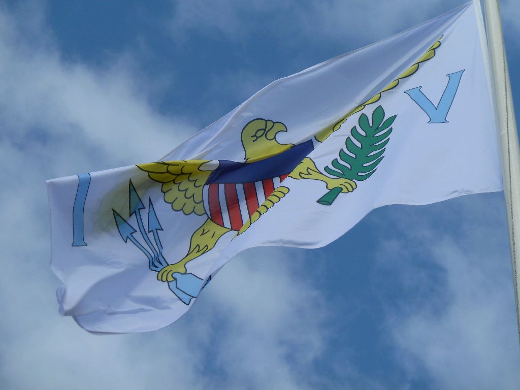 Oberndorf, Osteland. Diese Flagge gehört den US Virgin Islands. Diese US regierten Inseln sind Saint Croix, Saint John und Saint Thomas. Sie liegen Östlich von Puerto Rico. Sea u Bert
