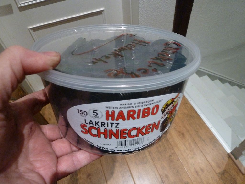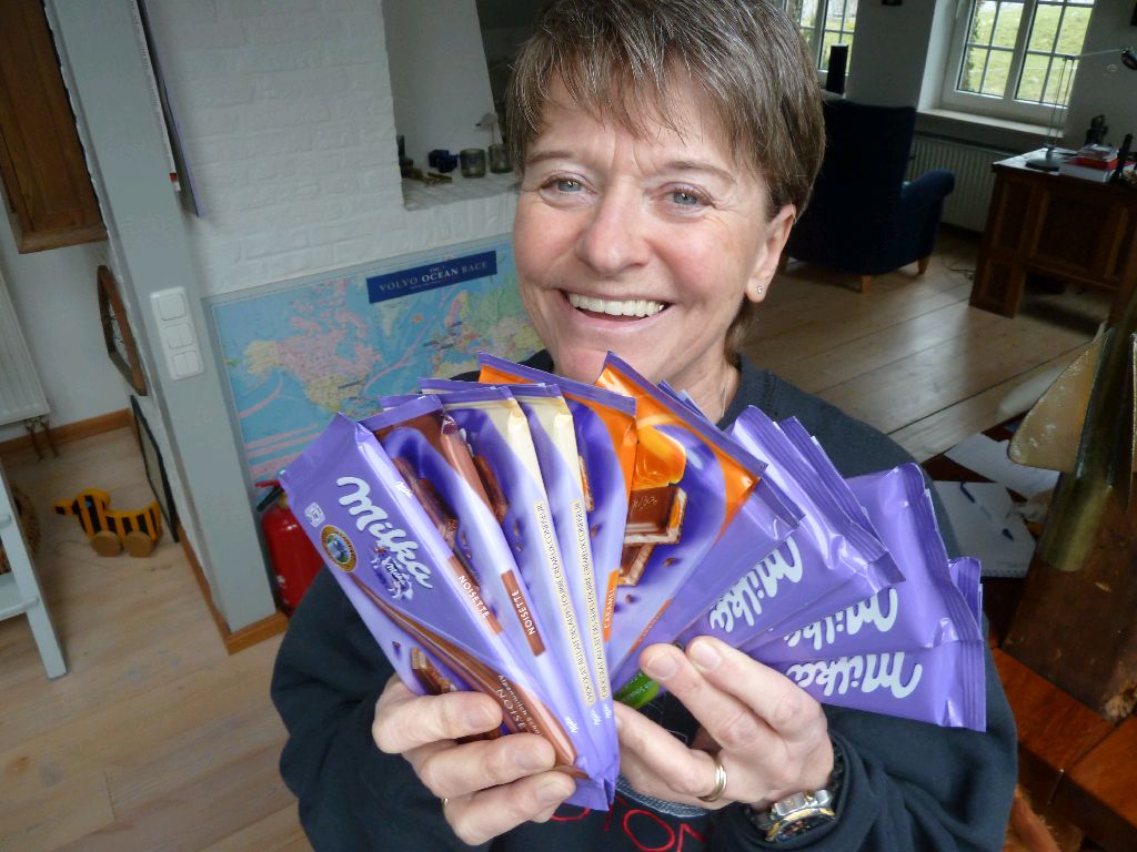 Oberndorf, Osteland. So sind sie, die Leute hier an der Oste. Im letzten Moment kommt noch Albertus vorbei und bringt 1,5 kg Lakritzschnecken. Ein wichtiger Rettungsring, nachdem doch auf unserer letzten Atlantiküberquerung der Lakritznotstand ausbrach. Danke Albertus. ____/)____ Sea u Marlene und Bert