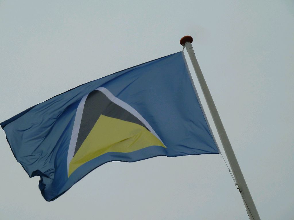 Oberndorf, Osteland. Die Flagge von St. Lucia. Ein niedlicher kleiner Inselstaat, mit einem Regenwald in der Mitte. War unser erster Stop nach dem Atlantik. ____/)____ Sea u Bert