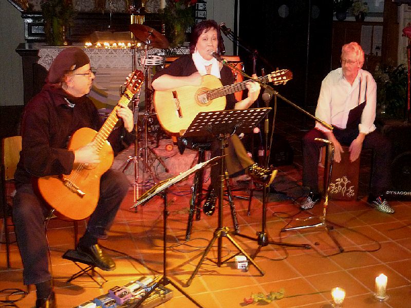 Oberndorf, Osteland. Was es hier alles so gibt, Teil 2: lateinamerikanischen Weihnachtszauber in der Kirche am Fluss. Die aus Chile stammende Patricia Salas, die mittlerweile in Oberndorf wohnt, verbreitete am vergangenen Wochenende im Kirchenschiff mit dem Volumen ihrer Stimme ‘Latin Christmas’. Begleitet von ihrem Mann Tim Swan (Percussions) und dem Gitarristen Andreas Hecht ließ das Trio so manchen Oberndorfer mitswingen und mitklatschen. Ein gelungener Abend. ****** Marlene und Bert
