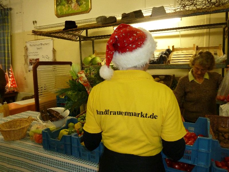 Oberndorf, Osteland. Was es hier alles so gibt, Teil 3: Landfrauenmarkt in Ihlienworth. Ein gemütlicher Ort in der Nähe von Oberndorf ist zweimal im Monat magnetisch. Kreative Landfrauen aus dem Landkreis Cuxhaven organisieren in der Alten Meierei einen Markt, der alles bietet: Obst, Gemüse, Brot, Wurst, Fleisch, Käse, Nudeln, Joghurt, Honig, Eier, Forellen, Tee, Apfelsaft, Seife, frische Sträuße, Trockengestecke, Töpferwaren, Handarbeiten und vieles mehr aus der Region und eigener Herstellung. Jetzt zur Weihnachtszeit gibt es tolle Dekosachen und hübsche Geschenke. Bert ist im Kaufrausch. Im gemütlichen Landfrauen-Markt-Café direkt neben den vielen Ständen gibt es selbstgebackenen Kuchen und superleckere Torten. Wir sind begeistert. Die nächsten Termine unter: www.landfrauenmarkt.de. ***** Marlene
