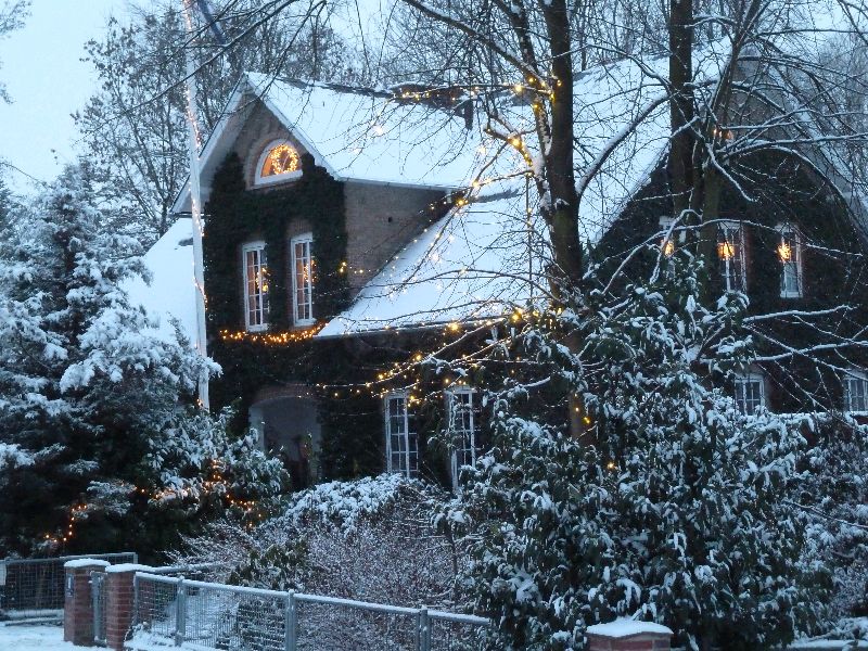 HOberndorf, Oste. Es ist ein Traum. Kaum sind wir hier im Winterurlaub und schon fängt’s an zu schneien. herrlich knackig kalt und Puderzucker drüber. Marlene schmückt den Weihnachtsbaum und unsere Eingliederung klappt prima diesmal. Selbst den Jet-Lag haben wir besser im Griff. Wir schlafen schon ganze Nächte durch. Nach dem Besuch unserer Lieblingszahnärztin (Dentessa) ein Spaziergang auf dem Jungfernstieg und Kaffee mit Dirk von ‘M’. Hamurg ist eine schöne Stadt. Oberndorf das schönste Dorf der Welt. Sea u Bert