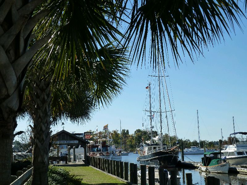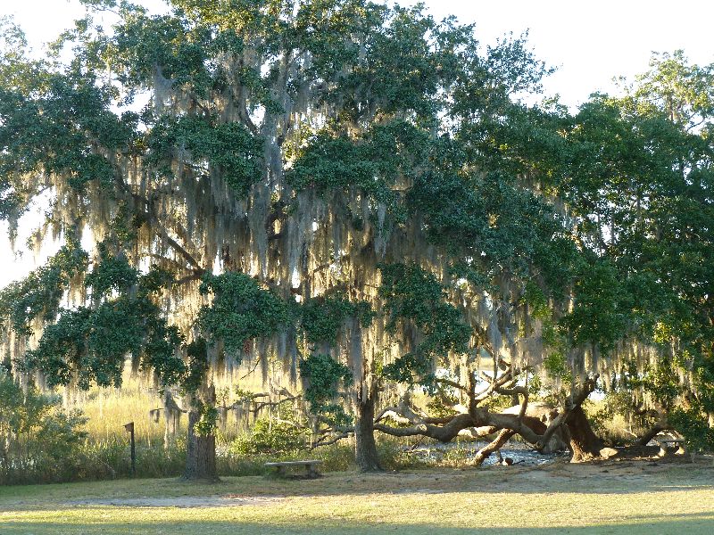 Georgetown, South Carolina, USA. Ein herrlicher Tag zusammen mit den ‘Pjotters’ Martha und Kees. Wir haben die Charleston-Tour gemacht, waren auch wieder in Boone Hall, dieser wunderschönen Plantage, auf der Fackeln im Sturm gedreht wurde. Und da wir gerade diesen Film mit seinen 12 Teilen aus der Konserve ansehen, sind wir besonders angetan. Da war dieser Baum am Fluss, unter dem der schönen Madeline die Tränen in das nicht zu übersehene Dekolltee tropften. Und Marlene hat Baumwolle gepflückt. Bis sie das Material für ein paar neue Jeans zusammen hat, dauert’s wohl noch. Sea u Bert
