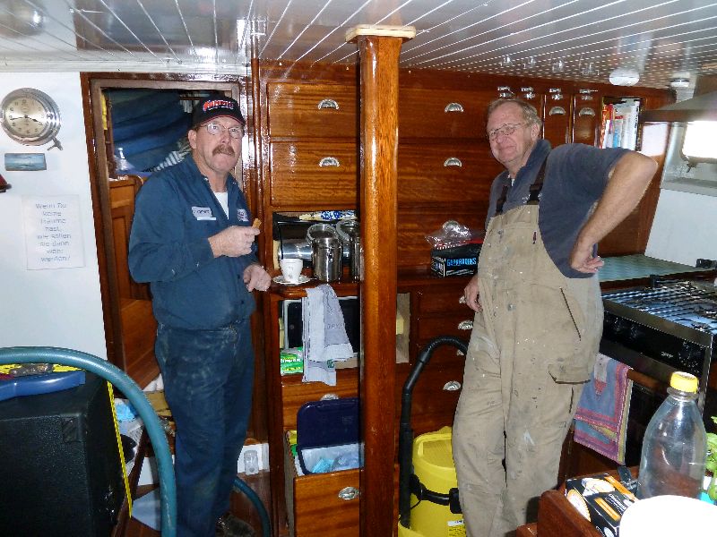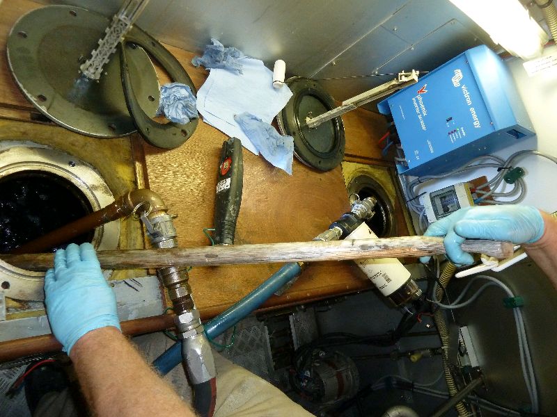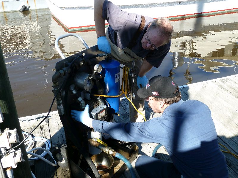 Georgetown, South Carolina, USA. Alles riecht nach Diesel, reicht langsam. Heute, nachdem wir alles fein vorbereitet hatten kam, Clearance, so heißt der Diesel-Spezi. Ein Pumpenfiltersystem hat er auf eine Art Schiebkarre montiert. Mit dem Ding haben wir dann Dreck herausgesaugt und den ganzen Tankinhalt mit 2 Micron gefiltert. Die bei uns eingebauten Filter haben 30 Micron, sind also viel gröber. Unser Sprit ist also jetzt superrein. Damit der blöde braunschwarze Staub sich nicht in die Ecken verkrümelt und sich ums gefiltert-werden drückt, habe ich mit einem alten Paddel im Tank Seegang gemacht. Ok, mehr geht nun nicht. Wir sind aber in Zukunft auch in der Lage, so eine Aktion selbst zu machen. Wir haben die Pumpe und feine Filter an Bord. Heimkehr hat keine Algen oder Bakterien im Tank. Der Diesel hier in den Staaten hat eine andere Zusammensetzung. Ein höherer Bioanteil z.B. macht den Diesel weniger haltbar. Eine info von Deutz, unserem Motorenhersteller, spricht von soetwas. Wir werden nun mit Deutz reden und herausfinden, was wir zur Konservierung hinein tun müssen. Hier ist es Mode, 2-Taktöl oder Transmissionfluid (ATF) beizumengen. Das gibt dem Diesel mehr Fett und bessere Schmiereigenschaften. Ein Biozid (Grotamar) haben wir auch schon drin. Aber das kläre ich erstmal mit Deutz ab, was noch in den Kutter-Cocktail gehört. Nun haben wir die Nase voll vom Dieselgeplantsche und haben für ein paar Tage ein Auto genmietet. Der Preis ist cool: 5 Tage für 76 Dollar, etwa 50 Euro. 10 Euro am Tag finden wir echt billig. Sea u Bert