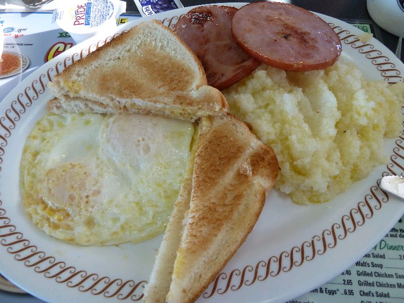 Georgetown, South Carolina, USA. Grits ist ein Mus aus Mais. Hier in den Südstaaten eine Beilage zu allen möglichen Speisen. Shrimp and Grits zum Beispiel. Oder zum Frühstücks-Spiegelei. Wir mögen es. Sea u Bert