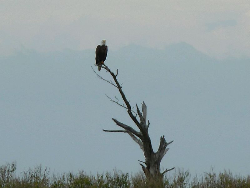 Intracoastal Waterway. Wir glauben, dass der auf unserer Fahrt nach Norden auch schon dagesessen hat. Das amerikanische Wappentier, der Weisskopf-Seeadler. Der guckt immer so böse. Sea u Bert