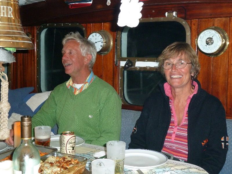 Belhaven, North Carolina. Nachdem wir vorgestern bei ‘PJOTTER’ aus Makkum Nudeln mit Spinat und Lachs (mmh! lecker!) gegessen haben, gab’s gestern auf HEIMKEHR den Huhn-Birne-Gorgonzola-Mozzarella-Geheimgewürz-Topf mit Süßkartoffel-Braunzucker-Auflauf. Zum Nachtisch Apfelmus mit Trauben. Wir tauschen Erfahrungen, Lebensträume und Zukunftspläne aus. Wichtige Erfahrung: Auch andere haben Heimweh. Wieder ist die Seekarten-Tischdecke von Ada und Eddy eine tolle Planungshilfe. Wir verabreden ein Treffen 2012 in Oberndorf, Schottland oder Schweden. Ein herrlicher Abend mit Martha und Kees. ____/)____ Wir gehen ankerauf und schippern mit Nieselregen und laufender Heizung weiter nach Süden. Unterwegs bekommen wir per Funk die Einladung zu einem geselligen Abend (socializing eben) mit einer amerikanischen Yacht. Das finden wir ganz ungewöhnlich und sind gespannt. ____/)____ All’s well on board. Marlene
