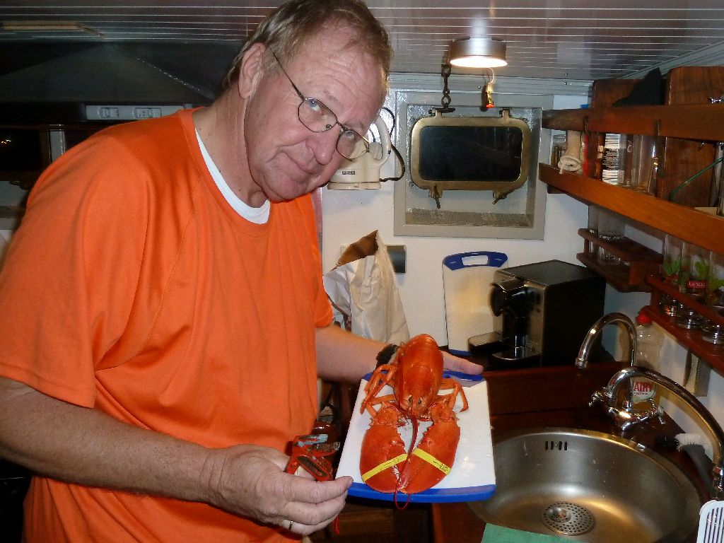 Newport, R.I., USA. Gestern ein zauberhaft angerichteter High Tea auf Spruce, very british.___/)___ Heute waren wir beim süddeutschen Katamaran Pacific High zum Capucchino und leckerem Kuchen. Bisher kannten wir uns nur von Mail und Funk.____/)___ Morgen ein Cook-Out in chinesisch auf dem englischen Katamaran Cataceos, jeder bringt ein chinesisches Gericht mit. ____/)____Heute Abend bei uns ein bescheidenes Mahl, Lobster für Leni und mich. Den hatten wir mal als Reiseziel ausgesetzt. ‘Wir wollen nach Neu England, haben wir immer gesagt, um einen richtigen frischen Hummer zu essen. Haben wir heute verputzt. Übrigens deutlich unter 10 Euro pro Nase. Leider haben wir die Hummergabeln nicht gefunden, die Mutz uns vor Jahren für genau diesen Tag geschenkt hatte._____/)___ Morgen wahrscheinlich Frühstück mit der netten Pacific High Familie in der Seemannsmission. ____/)____Übermorgen Happy Hour für die Nachbarn auf Heimkehr. ____/)___ Mann ist das ein Stress. Sea U Bert