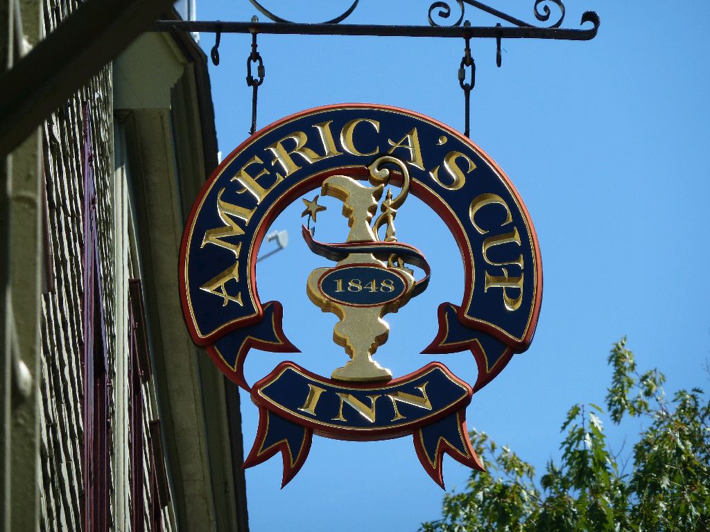 Newport, R.I,, USA. Um diesen Pott, respektlos auch bodenlose Kanne genannt, gings in den America’s Cup Regatten seit 1851. 132 Jahre lang blieb er trotz zahlreicher Herausforderungen im hiesigen New York Yacht Club. Der Pott ist übrigens nicht eimal aus Silber, sondern Zinn versilbert. Die Budgets sind heute pro Boot gern über 100 Millionen Dollar. Deswegen haben Leni und ich uns entschieden, es doch nicht zu versuchen. Straßen und Kneipen tragen den Namen natürlich auch. Mehr gibt’s bei Wikipedia – America’s Cup. Sea U Bert