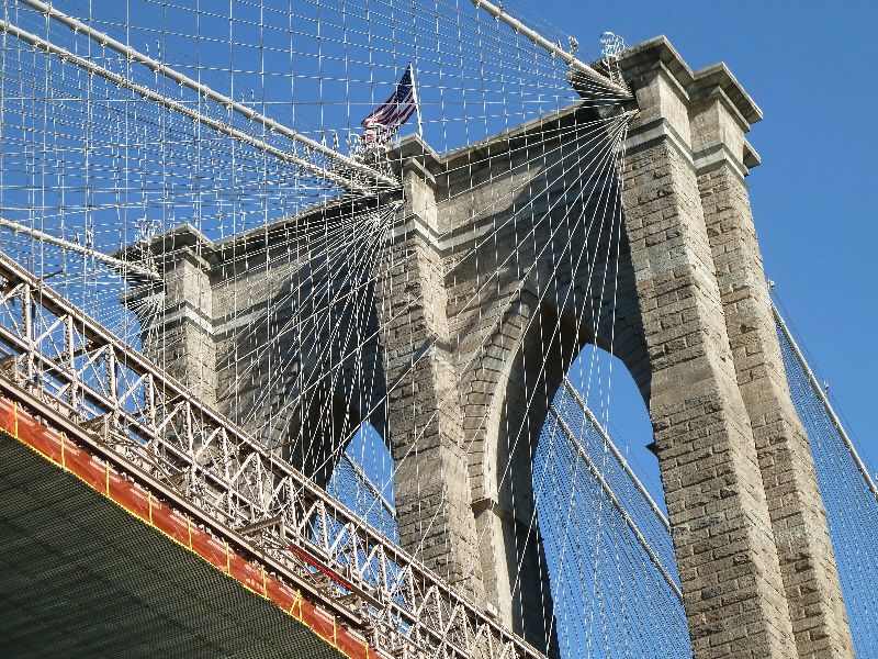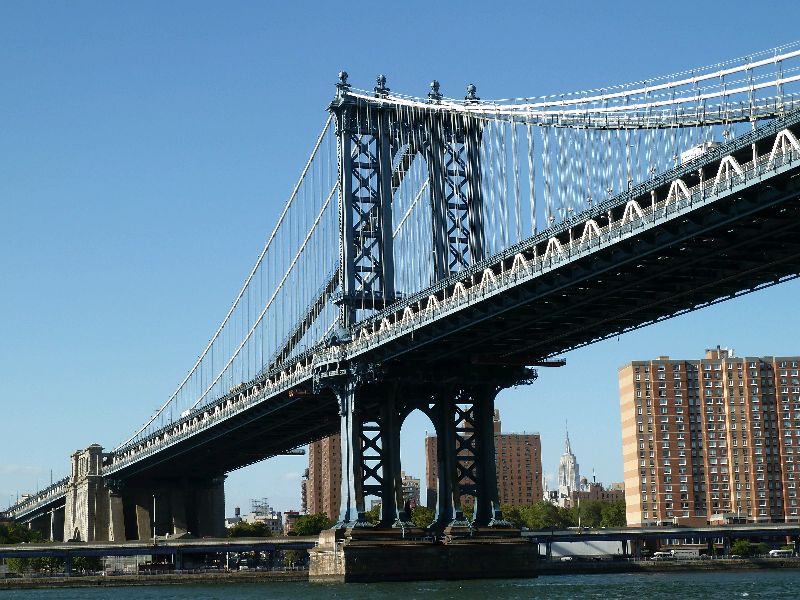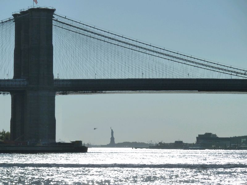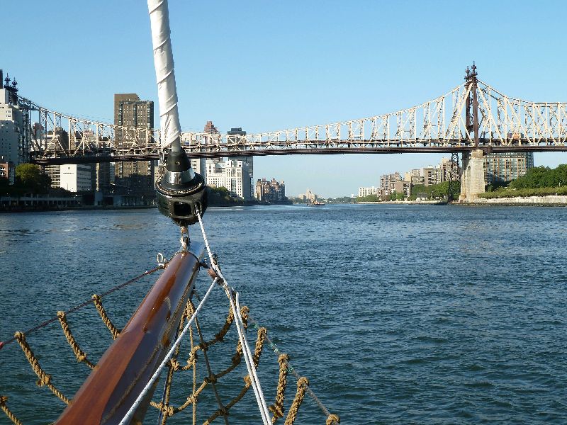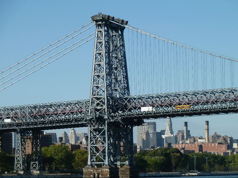 New York. Der East River ist ohne Zweifel das schönere Stück New York. Der Fluss ist schmaler als der Hudson. Der Weg flussaufwärts führt sehr dicht an den hohen Häusern vorbei und unter wunderschönen alten Brücken durch.
