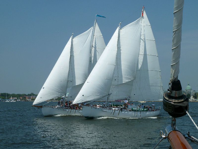 Annapolis, USA. Diese beiden schönen Schooner aus Holz, Woodwind I + II, sind bei ihren Törns in der Chesapeake Bay immer bei uns vorbei gesegelt. Als wir ankerauf gingen, riefen sie rüber ‘We will miss you’!. Leni und ich sind vor vielen Jahren mal mitgesegelt. Damals haben wir von der Reise hierher geträumt. SeaU Bert
