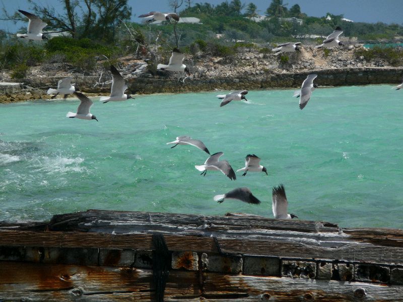 dumdidumdidum, dumdidumdidumdidumdidumdidumdidum…. Frei nach M. Anders ausgedrückt, eine Woche vor Anker reicht denn aber auch. Morgen geht’s weiter. Die englische Yacht Kalandia, die schon in Las Palmas neben uns gelegen hat, liegt neben uns und hat den gleichen Weg. Nach Nassau gehen wir nur, um zwei Seekarten-Chips zu holen, von denen wir aber noch nicht wissen, ob es sie dort gibt. Wenn nicht, müssen wir rüber nach Florida / Ft. Lauderdale, auf unserem Weg nach Charleston, South Carolina. Nassau hat ein schlechtes Image, hat eine hohe Kriminalität, und in vielen Straßen sollte man sich nachts nicht aufhalten, und auch bei Tage nur mit Vorsicht. Das finden wir doof. Also, wenn überhaupt, dann nur kurz. Bis Charleston sind’s ungefähr noch 500 Meilen. Die dauern aber etwas länger, weil wir in den Flachwassergibieten hinter den Riffen nicht nachts fahren dürfen. Unter Position könnt ihr diese türkise Welt sehen. Zwischen 3 und 2000 Meter Wassertiefe liegen hier nur ein paar Hundert Meter, so steil geht’s da abwärts. _____/)_____ Sea u Bert