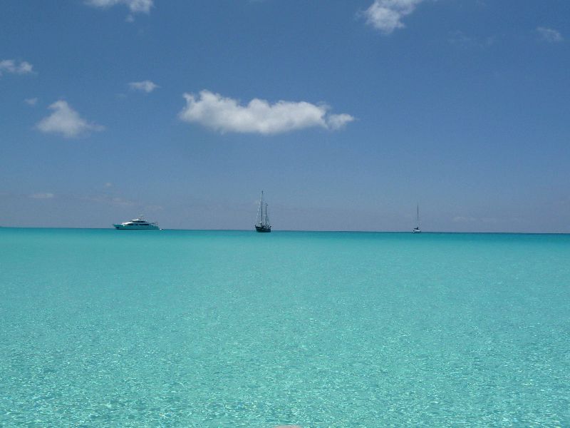 George Town, Bahamas, 6929 Seemeilen seit Oberndorf. Wir bleiben noch etwa bis Dienstag. So sieht es nach Wetterbericht aus. Vorher kommen wir nicht gut durch die Riffe. Dem Schiff tut das gut, viele Dinge, die schon lange auf der Liste waren, werden jetzt gemacht. Schöner kann man auch kaum liegen, außer in der Oste. Sea u Bert