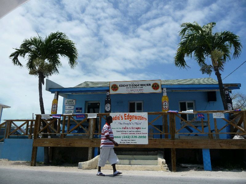 George Town, Bahamas. So ein Frontdurchgang dauert hier ziemlich lange. Bis Dienstag werden wir wohl noch bleiben. Dann geht’s weiter nach Norden, bis nach Nassau oder in die Nähe, dann kommt der Sprung nach USA. ___/)___ Heute hat uns eine Kellnerin ein Bahamarezept verraten, sie nennen es Grill. –In eine Alufolie etwas Öl, dan irgend ein Fleisch oder Fisch, ich hab Hühnerbrust genommen. Darauf alles Gemüse was da ist, Brokkoli, Zucchini, Zwiebeln, Plantain (gibt’s in Deutschland leider nicht), Ingwer, Knoblauch, Paprika und was sonst noch weg muss. Einen ordentlichen Schuß Weißwein drüber(das hat die Kellnerin nicht gesagt), etwas Salz und Pfeffer. Folie verschließen und für etwa 25 Minuten in den Backofen. Macht auch wenig Abwasch. Man könnte auch Reis dazu essen, haben wir nicht, haben die Kartoffeln mit hinein getan. Sea u Bert