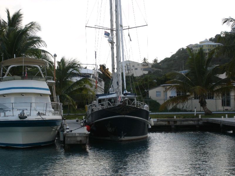 Road Harbour, Tortola, BVI, Westindies. Wir haben eine kleine Marina gefunden, in der unsere Heimkehr für 3 Wochen sicher liegen kann. Wir mussten vor der Einfahrt eine Dreiviertelstunde auf den Lotsen warten, denn die Rinne hat eine Tiefe von 2,30 und wir einen Tiefgang von 2,25. Passt. Aber nur, wenn man weiß, wo die tiefste Stelle der Rinne ist. Nette Leute hier, das ist wichtig. Wir haben ein gutes Gefühl.