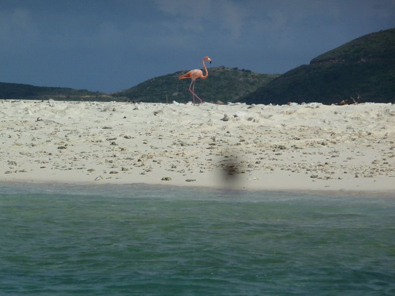 Vor Anker, Gorda Sound, Leverick Bay, BVI, Westindies. Heute sind wir mit Gaby und Lutz von der SuAn zu einer Mini-Insel mit nur zwei Palmen gefahren, die bei näherer Betrachtung geschummelt, aus Plastik waren. Der Rest war echt, ein Ammenhai bei der Siesta, Gelbfische und ein Flamingo, der völlig unecht aussah, es aber nicht war. Palme unecht, Flamingo echt. Sea u Bert _____/)______