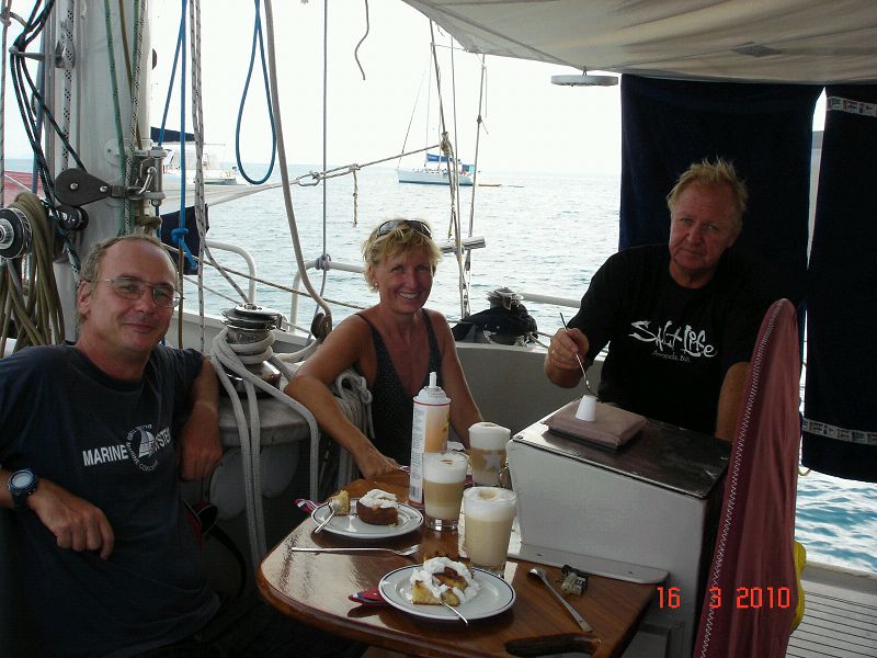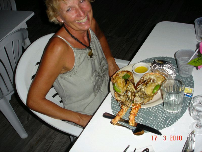 Und dann auch noch ein runder! Also erstmal mit dem Bus zu einem nordöstlichen Strand zum Schnorcheln. Da trafen wir einen Hai beim Mittagsschlaf. Dann zu Leni’s Oberndorfer Apfelkuchen auf die Heimkehr. Abends hat Gabi zum Lobsteressen eingeladen. Lecker und die absolute Spezialität der Insel. Zum Schluss noch ein Drink auf der SuAn. Für uns ein toller Tag. Sea u Bert______/)____