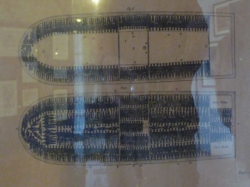 Statia. Dieses Bild aus dem Museum ist ein Stauplan für den Sklaventransport. So, wie dort abgebildet, lagen die Sklaven angekettet im Schiff.
