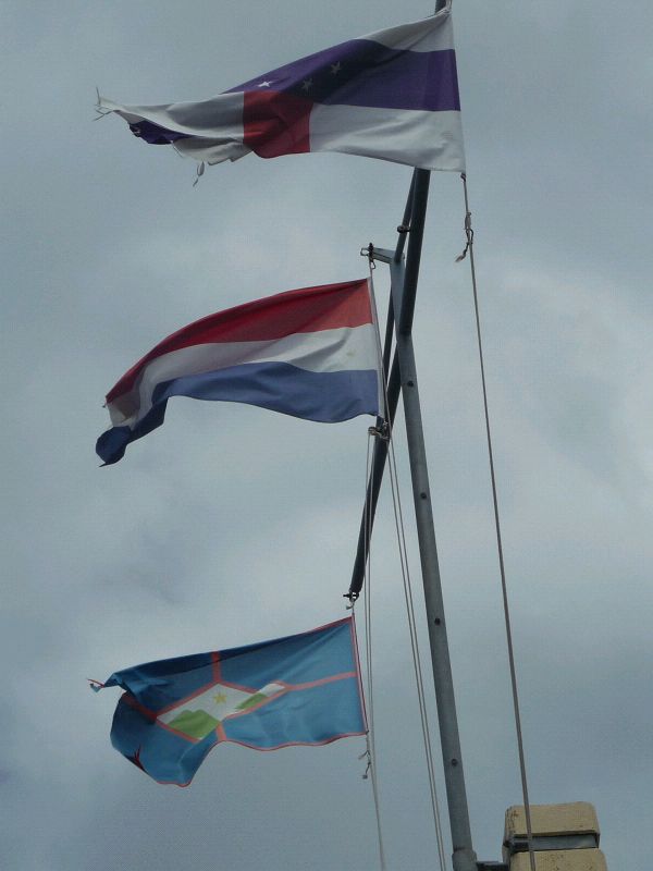 Statia. In der Mitte die holländische, unten die von Statia, oben die der niederländischen Antillen.
