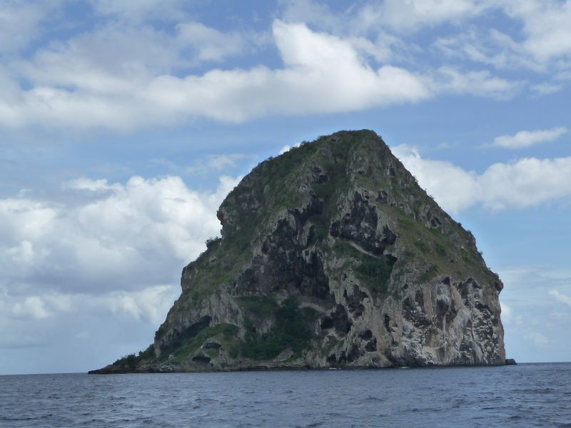In See, Westküste von Martinique. Dieser Felsen wurde einst zum Schutze der Einfahrt von Fort de France mit englischen Marinesoldaten bemannt. Weil sich diese Art von Einheit nicht in die Royal Navy integrieren ließ, wurde sie zum Schiff erklärt. HMS Diamond Rock.