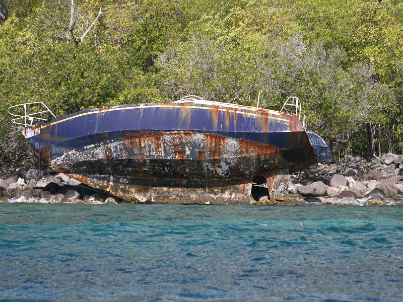 St. Pierre, Martinique. In den Buchten liegen Wracks, auch von modernen Yachten. Spuren vom letzten Hurrikan. Die Hurrikan-Saison fängt aber erst im Juni an. Dann sind wir hier längst weg. Sea u Bert