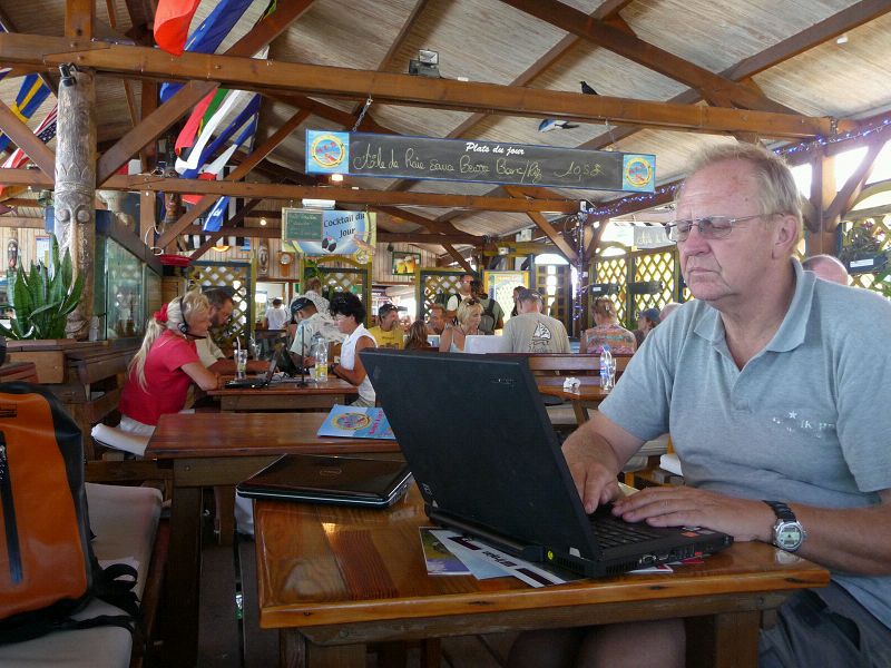 Le Marin, Martinique. Nette Kneipe direkt am Wasser, was braucht der Segler mehr als eine gute Internet-Verbindung.. Hier sitzen sie alle, schreiben Mails und telefonieren über Skype. Sea u Bert____/)____