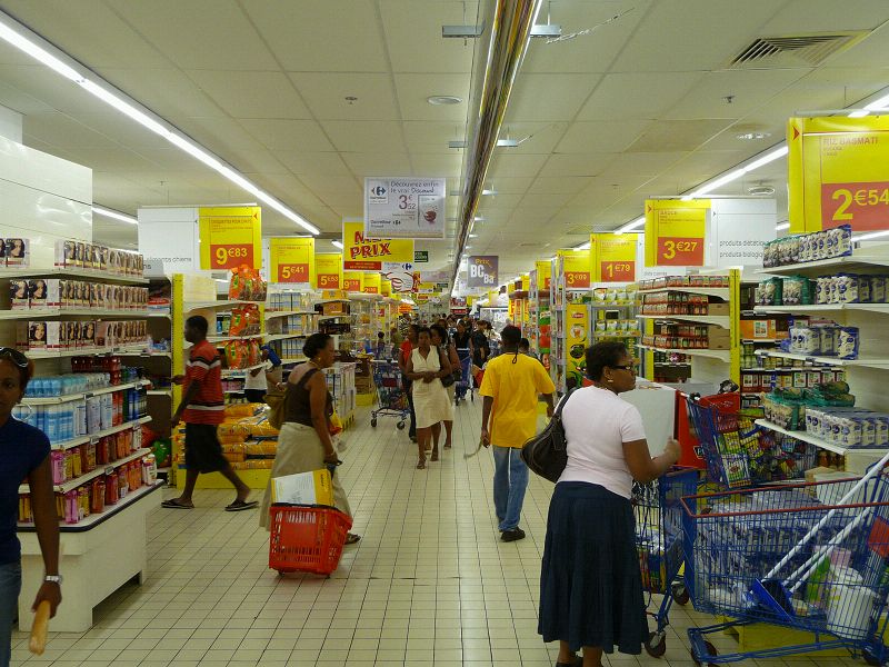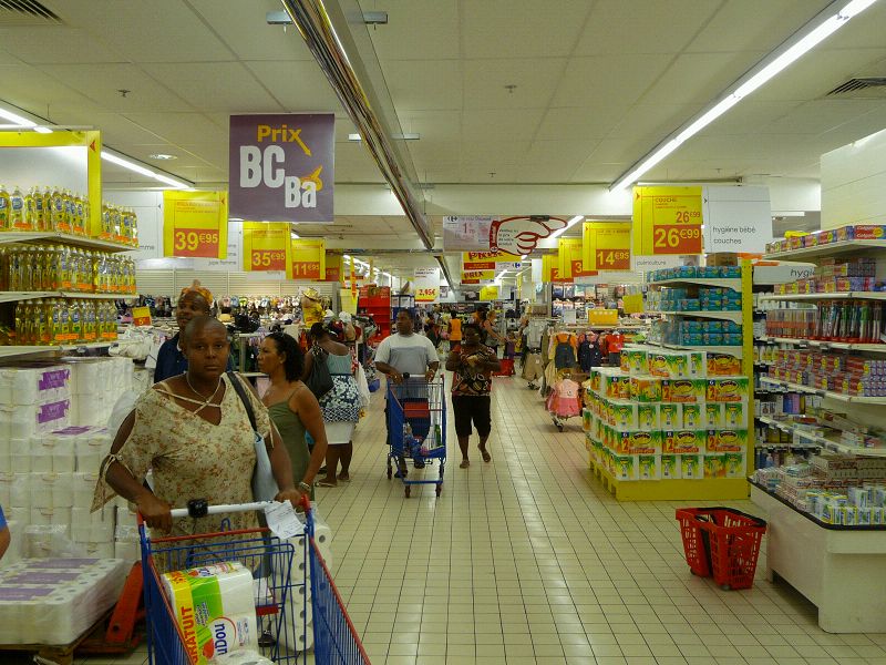 Heute waren wir mit dem Mietwagen in der großen Stadt. Fort de France. Eine Großstadt mit vierspurigen Staus. Alles sieht aus wie in Frankreich. Und dann der Supersupermarkt. Carrefour. Ein Blick rechts und ein Blick links den Gang runter, unglaublich. Alle bisherigen Supermärkte auf dieser Seite des Atlantiks, die wir besucht haben, waren maximal 10 % dieser Größe. Es gab sogar meinen Lieblingskäse Beaufort, aus den französischen Alpen. Die 25,– Euro pro Kilo haben mich aber abgehalten. Von Haribo gab’s auch allerlei, leider keine Lakritze. Die, die die Kinder mitgebracht haben, ist fast alle. Sea u Bert