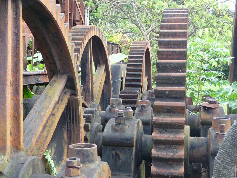 Le Marin, Martinique. La Mauny heißt der gute Tropfen, dessen Herstellung wir beobachten durften. Das geht so ähnlich wie beim Malt Whisky, nur eben mit Zuckerrohr. Unser Guide erzählt uns genau, wie alles funktioniert. Und zwar so charmant, dass wir trotz der französischen Erklärung alles verstehen. Warum ist die Zuckerrohrpresse von einer Dampfmaschine angetrieben? Ganz einfach, weil das ausgepresste Zuckerrohr gleich mit einem Förderband in den Kessel transportiert wird und so den Dampf für den Antrieb produziert. Keine weitere Energie also. Der Dampf wird auch für den Destillationsprozess benutzt. Hier wird so viel Rum produziert, dass 2.600.000 Flaschen pro Jahr abgefüllt werden. Zwei davon haben wir jetzt an Bord.