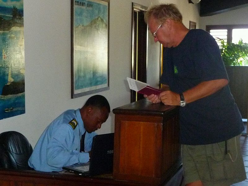 Canouan Airport, Canouan. Von so einem kleinen Flughafen sind sie beide noch nicht geflogen. Alles ganz niedlich, das Gebäude mit Palmendach und auch die Abfertigungsmäuse. Der Flieger war doch deutlich größer als der kreisende Pelikan. Wir mussten mit, um Julia und Marco aus der Crewliste auszuklarieren, denn sie sind ja per Schiff in diesen Staat gereist. Marco hat auch seinen Geburtstag an Bord gefeiert. War schön mit den beiden, schade, dass sie schon wieder weg sind. Sie fliegen nun zu Freunden nach Alabama und dann nach Hamburg. Sea u Julia und Marco. Marlene und Bert_____/)____