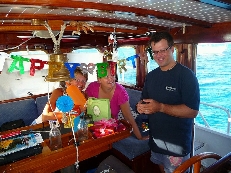 Vor Anker, Charlestown Bay, Canouan. 5463 Seemeilen seit Oberndorf. Eigentlich wollten wir noch weiter nach Süden, bis Grenada. Dort wollten wir uns wieder mit den Momo’s treffen und sie nach Panama verabschieden. Nun hörten wir heute über Kurzwelle, dass Momos Maschine Husten hat. Sie sind nach Bequia hineingesegelt und wollen nun reparieren. Dort liegen auch schon unsere Freunde Gaby und Lutz von der Su An mit saurer Maschine. Also drehen wir jetzt um und gehen nach Norden. Erstmal nach Bequia, dem schönsten karibischen Ort unserer bisherigen Reise. Dort werden wir Momos Brigitte, die immer so schicke Texte schreibt, zum Kaffeetrinken ins Hotel Gingerbread einladen, als Trost für den Maschinenmist. Wir werden dort versuchen, unser Radarkabel zur Drehantenne auszutauschen. Das neue hatte Julia mitgebracht. Anschließend gehen wir nach Rodney Bay, um bei Matthew unsere Backbord Lichtmaschine in Ordnung zu bringen. Dann sehen wir weiter, aber der Kurs bleibt Nord bis nach Kanada. Sea u Bert _____/)_____