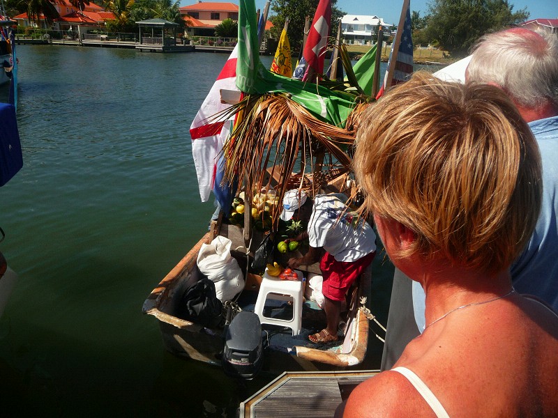 Also, diese drei Mäuse sind hier die Offiziellen, hier auf der Party. Von links: Sie bekommt das Hafengeld, die Mitte ist die Port Authority, erteilt die Genehmigung zur Hafennutzung und die Rechte ist der Immigration Officer und hat den hübschen Stempel in unsere Pässe gestempelt. Ich finde, bei uns sehen die irgendwie anders aus.