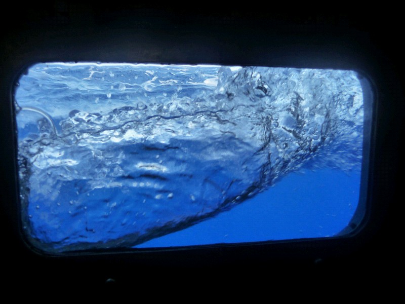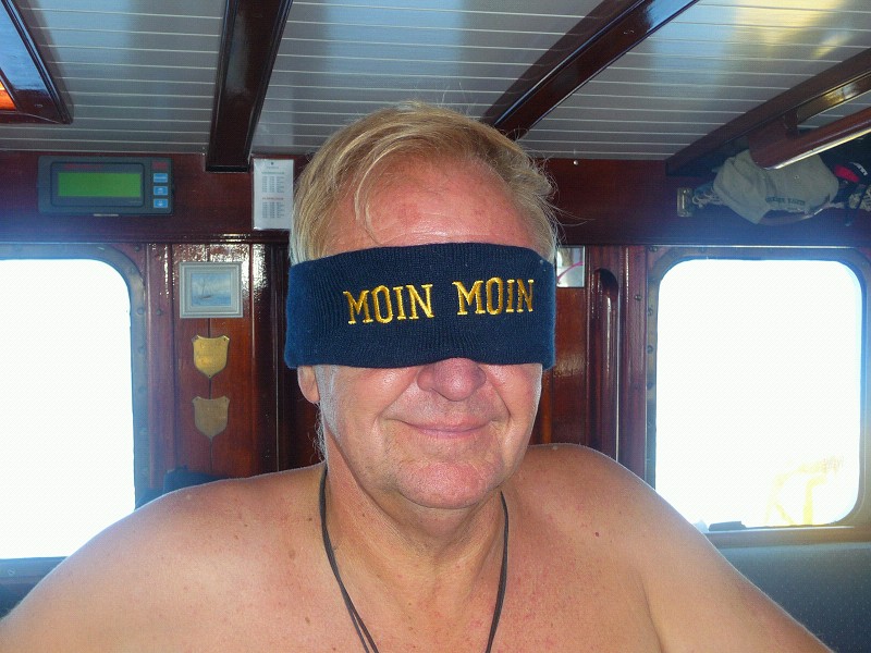 von den Kindern in der Atlantikschnur. Eine Augenbinde, damit man die tosende See nicht sieht, das beruhigt, unter gleichzeitiger Beibehaltung von Kommunikationsansätzen. Leni meint, es wäre ein Stirnband. Die hat manchmal komische Ieen.