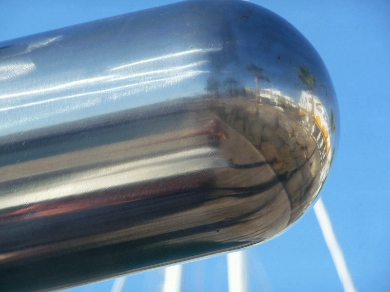 Serie über den Alltag an Bord. Heute: Nase putzen. Die Gelegenheit war günstig. soleicht kommt man(n) da sonst nicht ran. Nach einigen Durchgängen mit Nevr Dull glänzt sie wieder. Da wird Jürgen sich freuen, der hat sie gebaut.