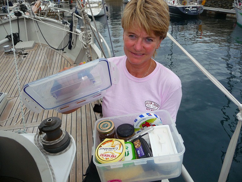 Serie über den Alltag an Bord. Heute: Die Sandwichbox. Da ist alles drin, zum Futtern. Wer also bei schlechtem Wetter Hunger hat, schnappt sich die Box und Brot, und hat alles da. Wurst, Käse, das Messer, alles drin.